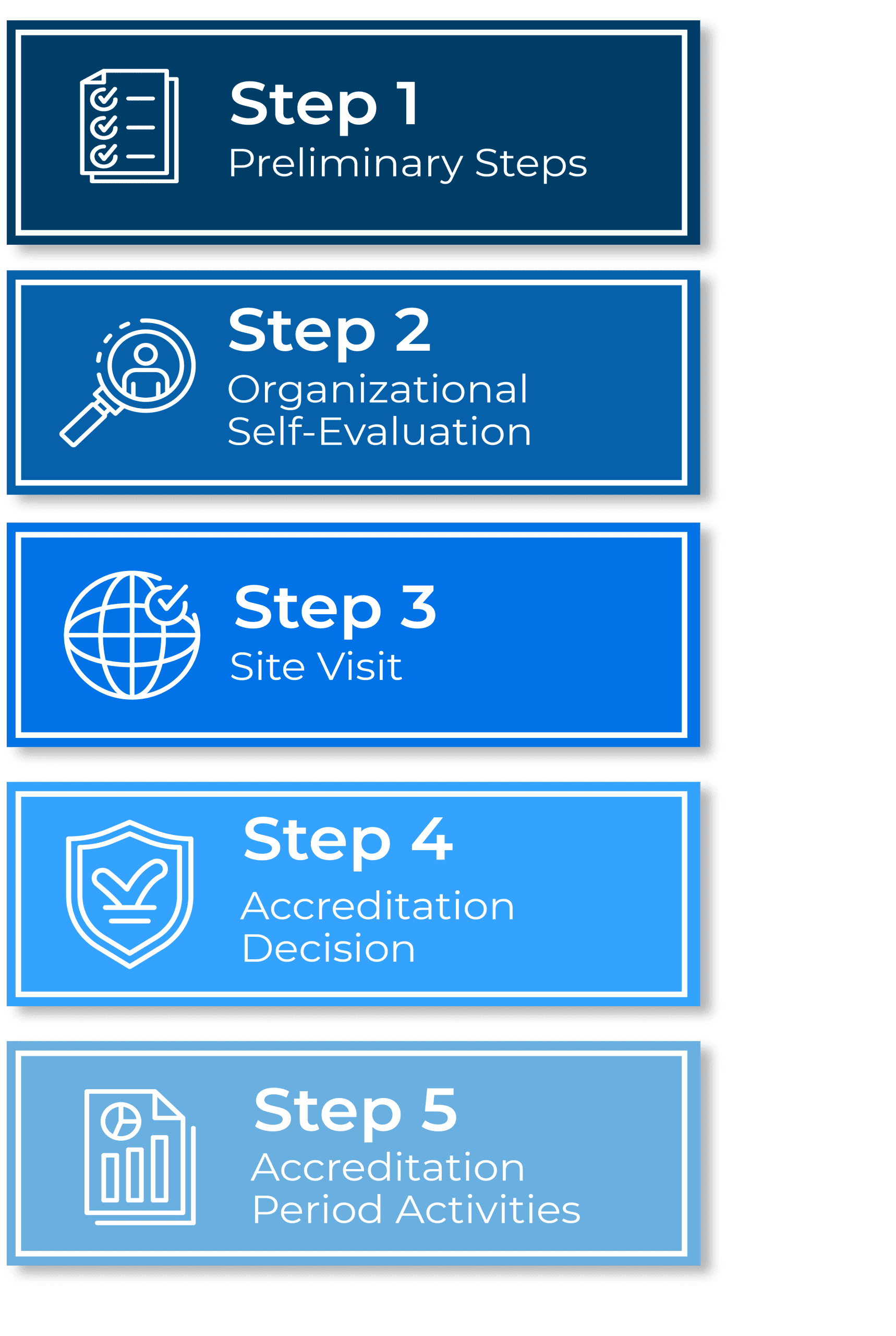 The accreditation process follows these five steps:
